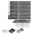 • Étui en métal incluant : 8 crayons à papier pour croquis (2H, H, HB, 2B, 4B, 6B, 8B et 12 B) et un crayon avancé 14B ; une gomme à effacer type crayon pour croquis ; 3 fusains professionnels : moyen, doux et dur ; 3 estompes en épaisseurs fine, moyenne et épaisse ; un cutter d'art ; une gomme à effacer pour croquis, une gomme artistique, un taille-crayon et un porte-crayon.