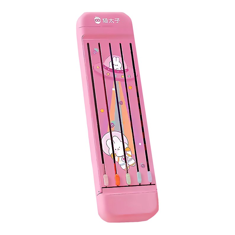 Mallette au design exclusif avec couvercle magnétique avec système d'éjection automatique. Comprend 5 crayons graphite, une gomme et une règle de 18 cm.