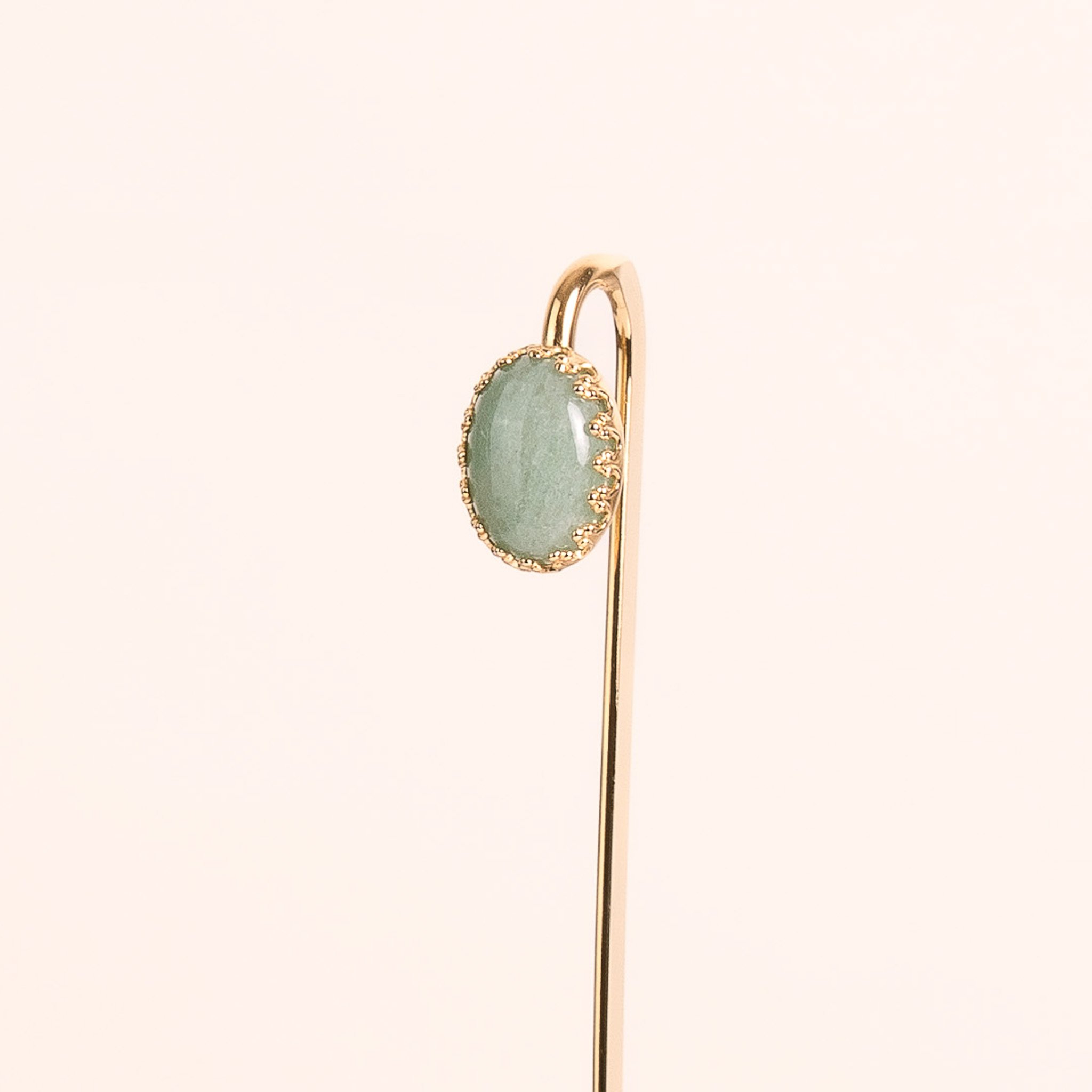 Caractéristiques : longueur 15 cm ; matière : laiton doré à l’or fin ; pierre principale : aventurine verte naturelle ; fabrication artisanale française.