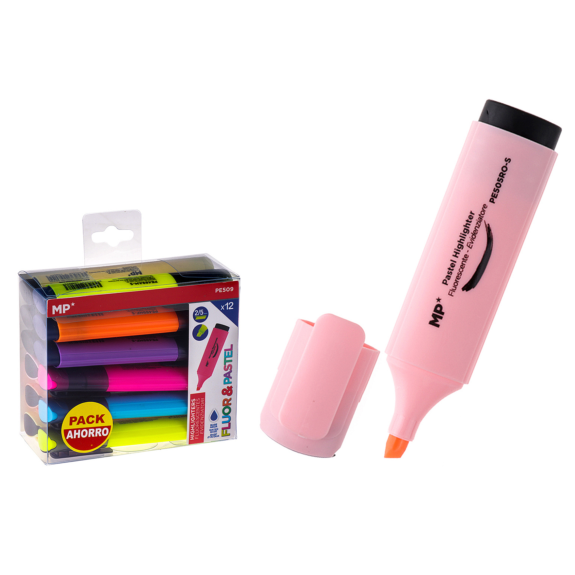 Marqueur fluorescent et craies 12 uds. Pack économie