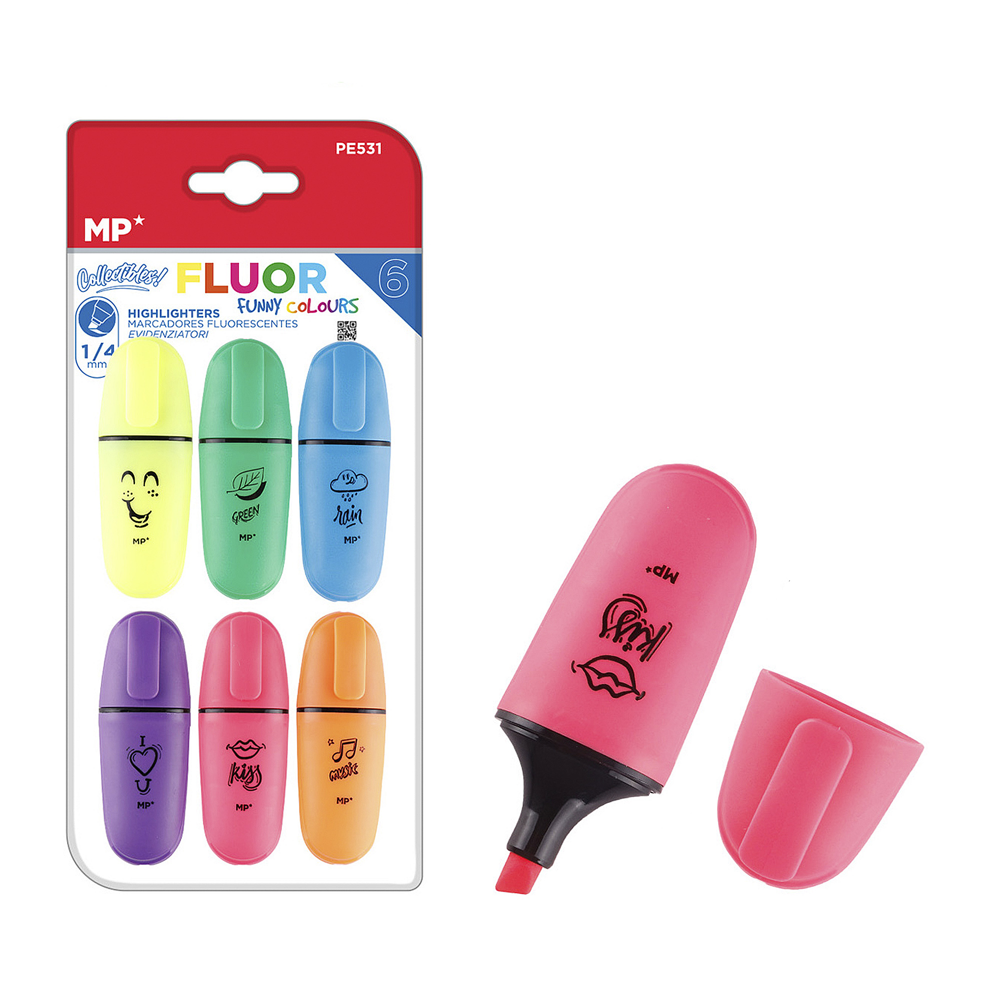 • Blister de 6 couleurs fluorescentes vives.