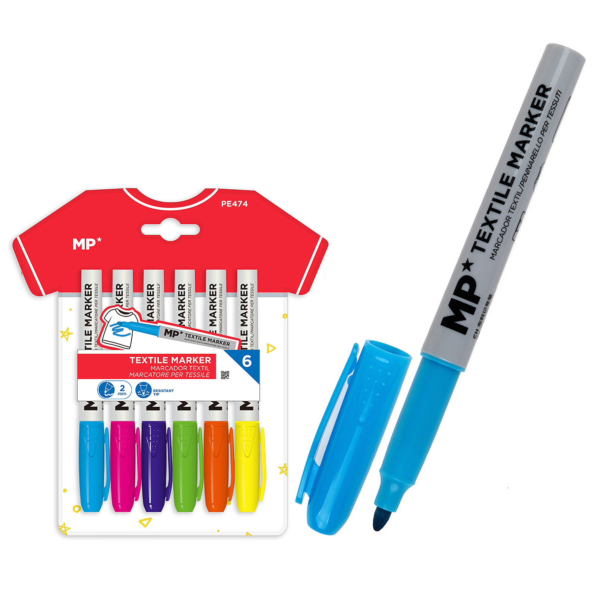 Marqueur textile 6 uds. Couleurs variées