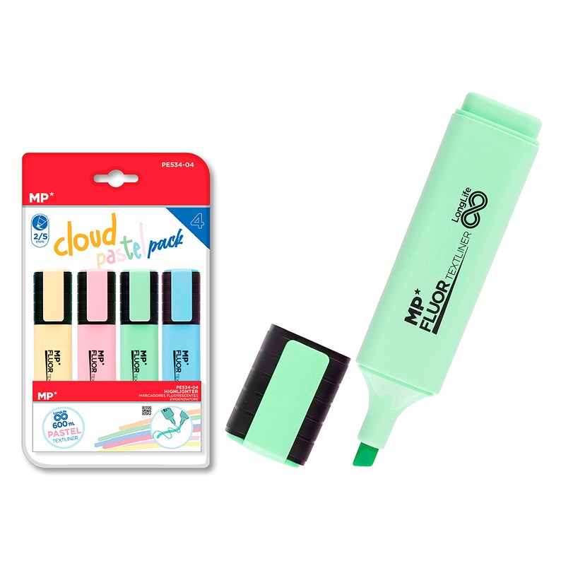 • Blister de 4 couleurs pastel assorties : jaune vanille, vert menthe, rose et ciel.
