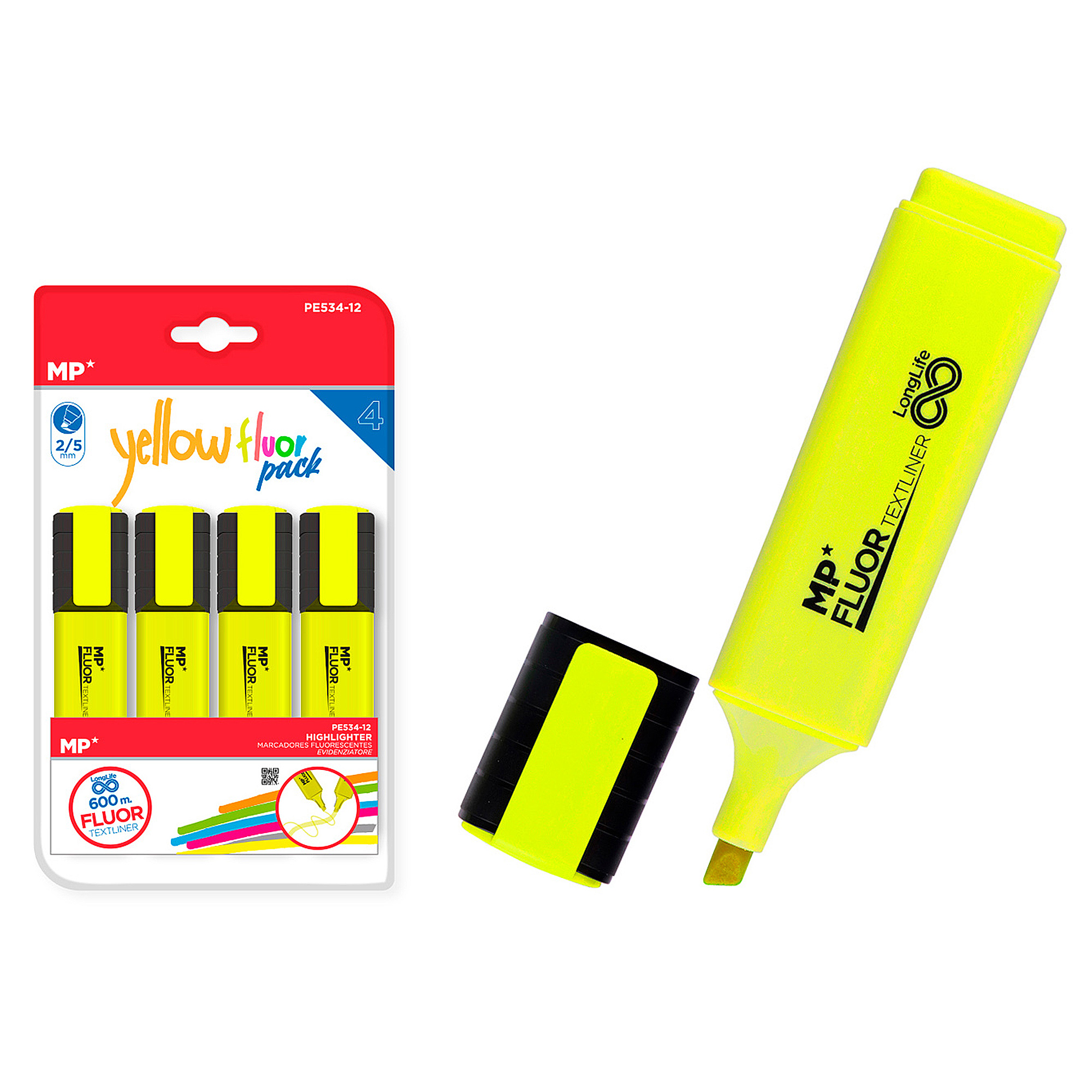 • Blister de 4 marqueurs jaunes fluo.