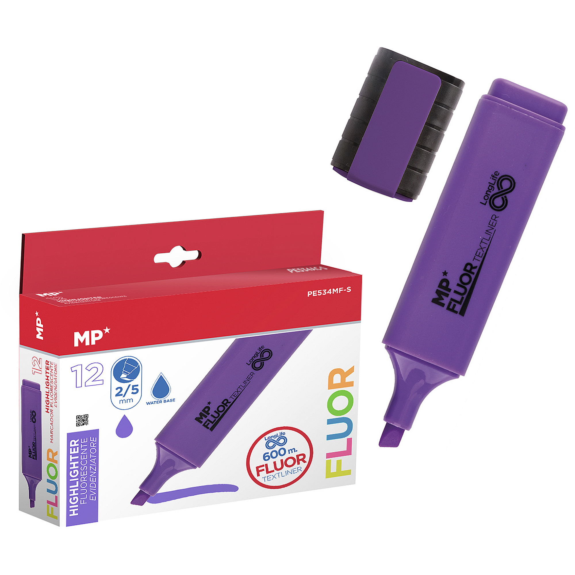 Pack 12 marqueurs long life fluorescent violet
