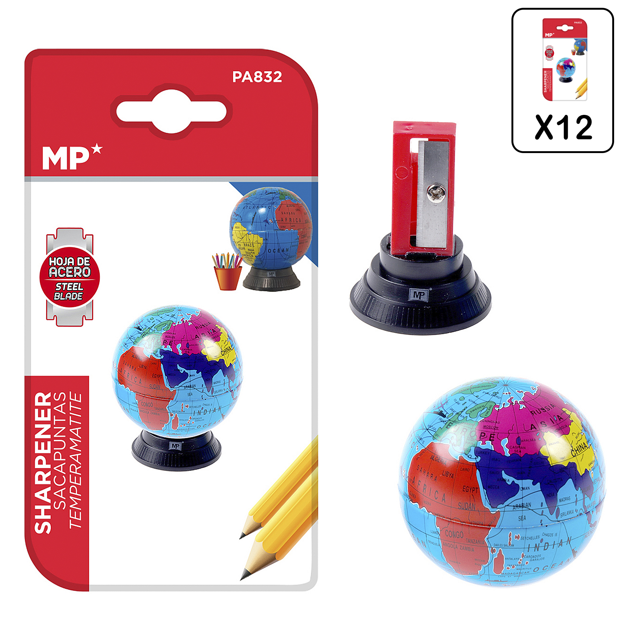 • Réservoir en forme de globe terrestre pour les copeaux.