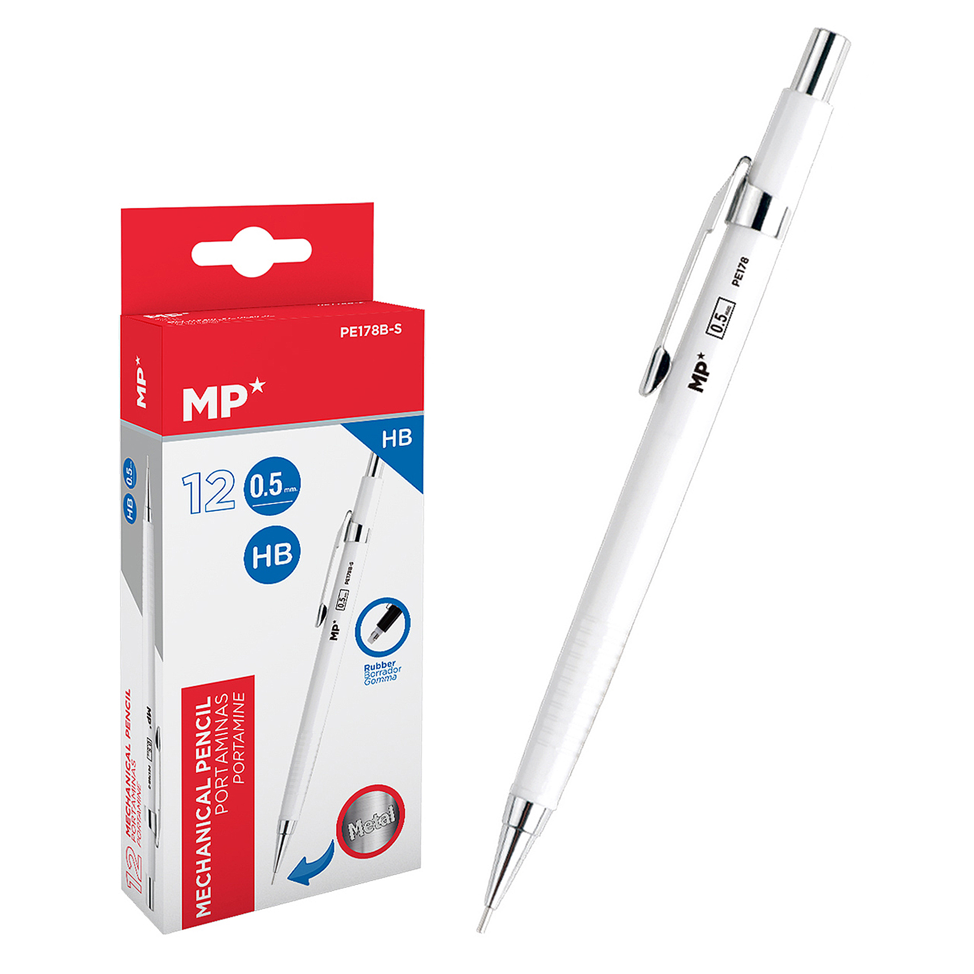 Pack 12 unités porte-mine métallique 0.5 mm blanc