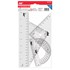 • Comprend : équerre 9 cm, rapporteur 13 cm, semi-cercle 10 cm et règle 20 cm.