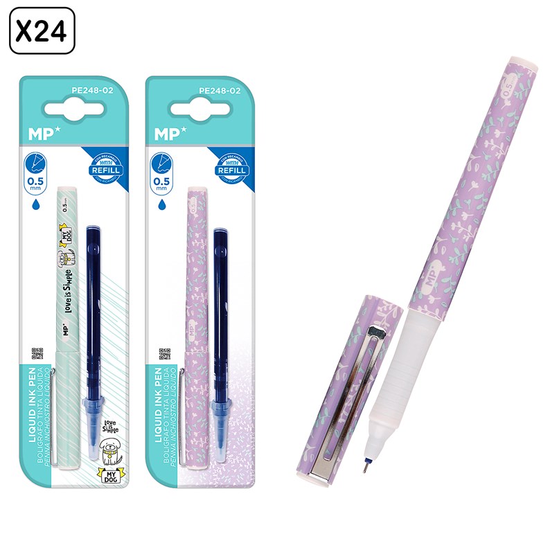 • Pack de 24 avec 1 blister contenant 1 unité, comprend une recharge d'encre liquide bleue.