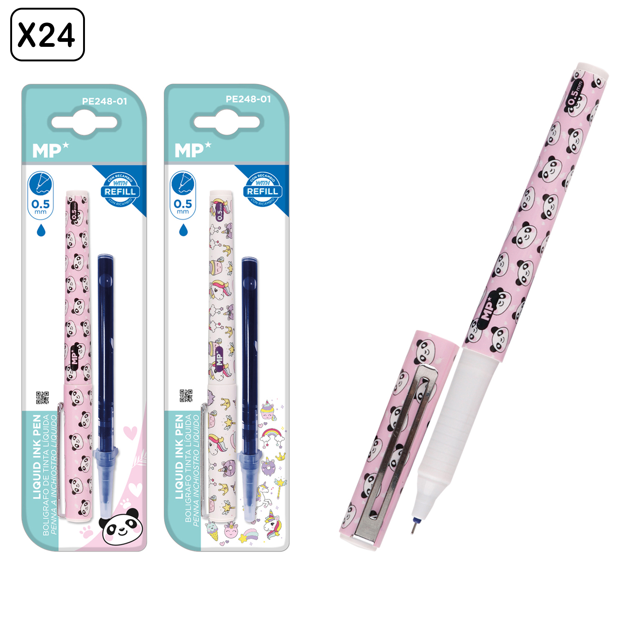Pack 24 uds. Boligraphe encre liquide pointe avec recharge 0,5 mm.