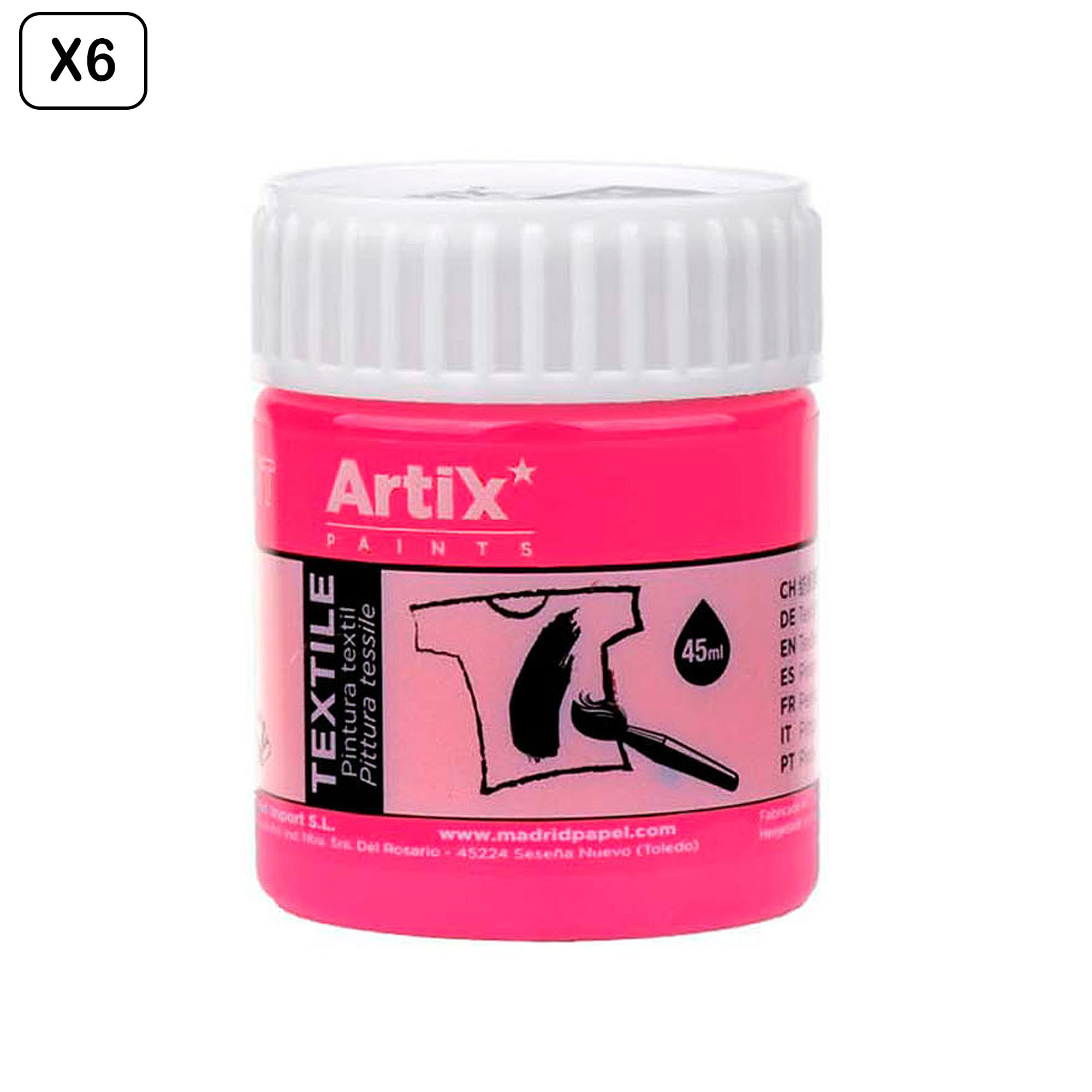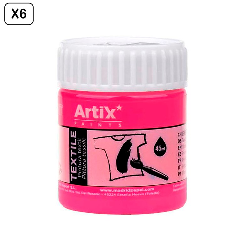 Pack 6 uds. Peinture textile rose néon 45 ml