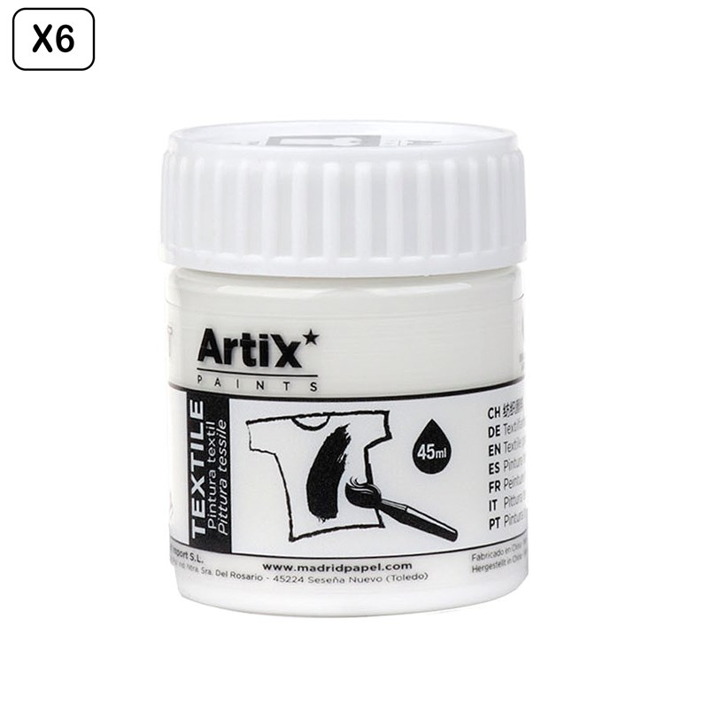 Pack de 6 uds. Pinture textile blanc 45 ml