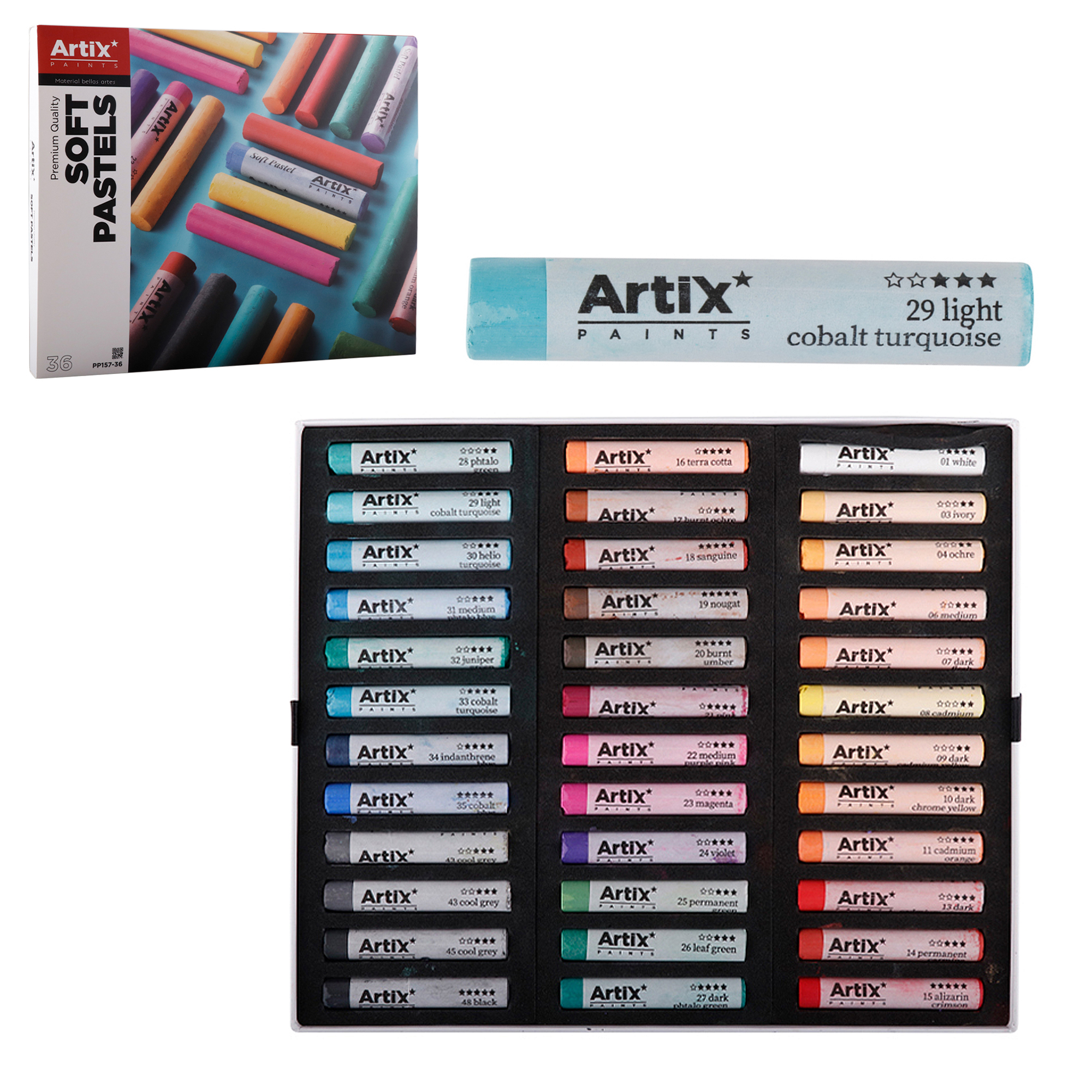 • Barres de 65 mm de longueur. Boîte de 36 couleurs.