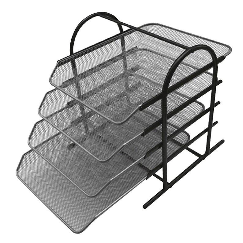 • 4 plateaux en escalier pour accéder facilement aux documents. Couleur noire.