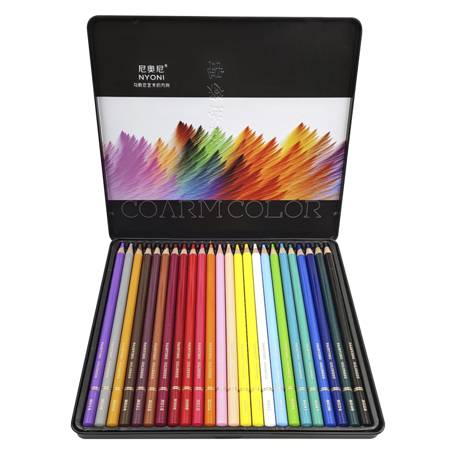 Lot de 24 crayons de couleur : • Zone de dessin 3,7 mm, taille-crayons. • Fabriqué en bois, selon des procédés respectueux de l'environnement. Forme ronde professionnelle. • Présenté dans une boîte en métal, avec un système de retrait facile du crayon.