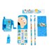 Ensemble de papeterie comprenant : • Coffret individuel en métal. 20,5x6,8x1,8cm. • Taille-crayon à manivelle • Gomme • Capuchons de crayon x2 • Règle avec loupe • Crayons x2 • Gabarits de dessin avec formes x4