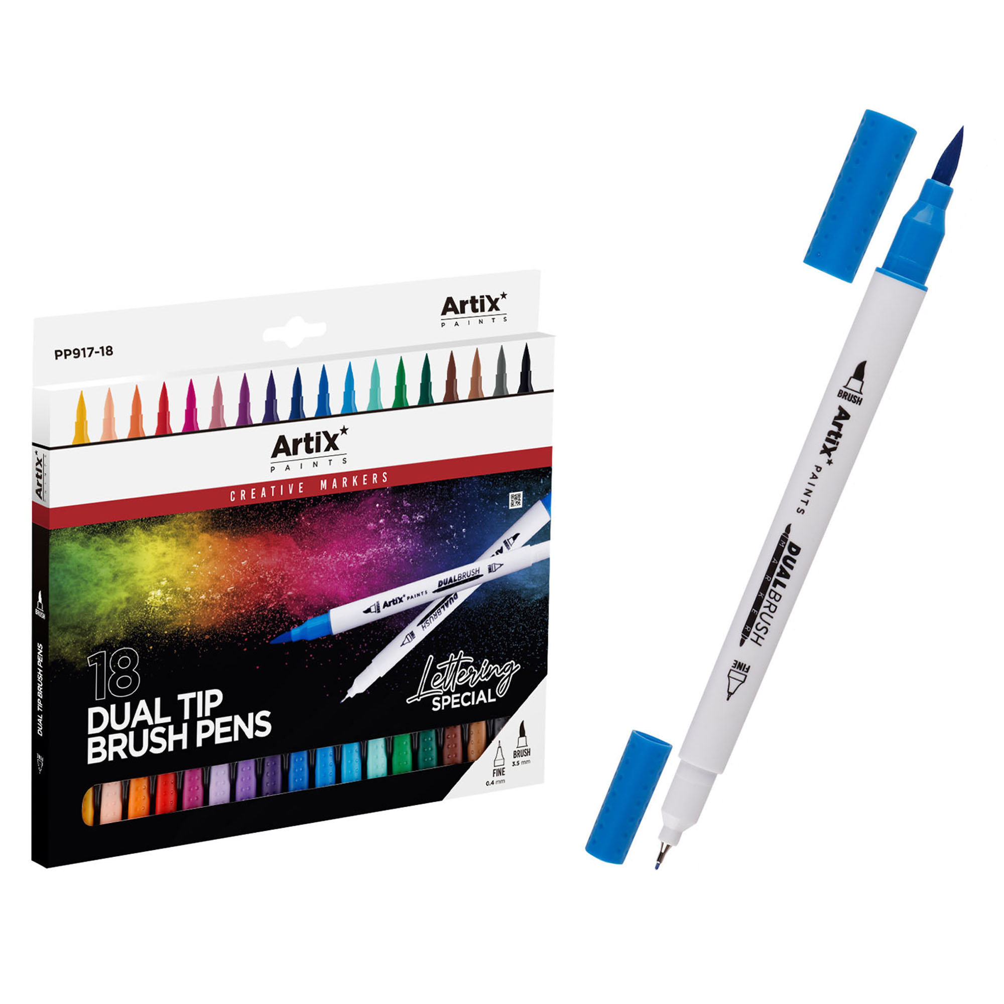 Set marqueurs double pointe pinceau lettering 18 uds.