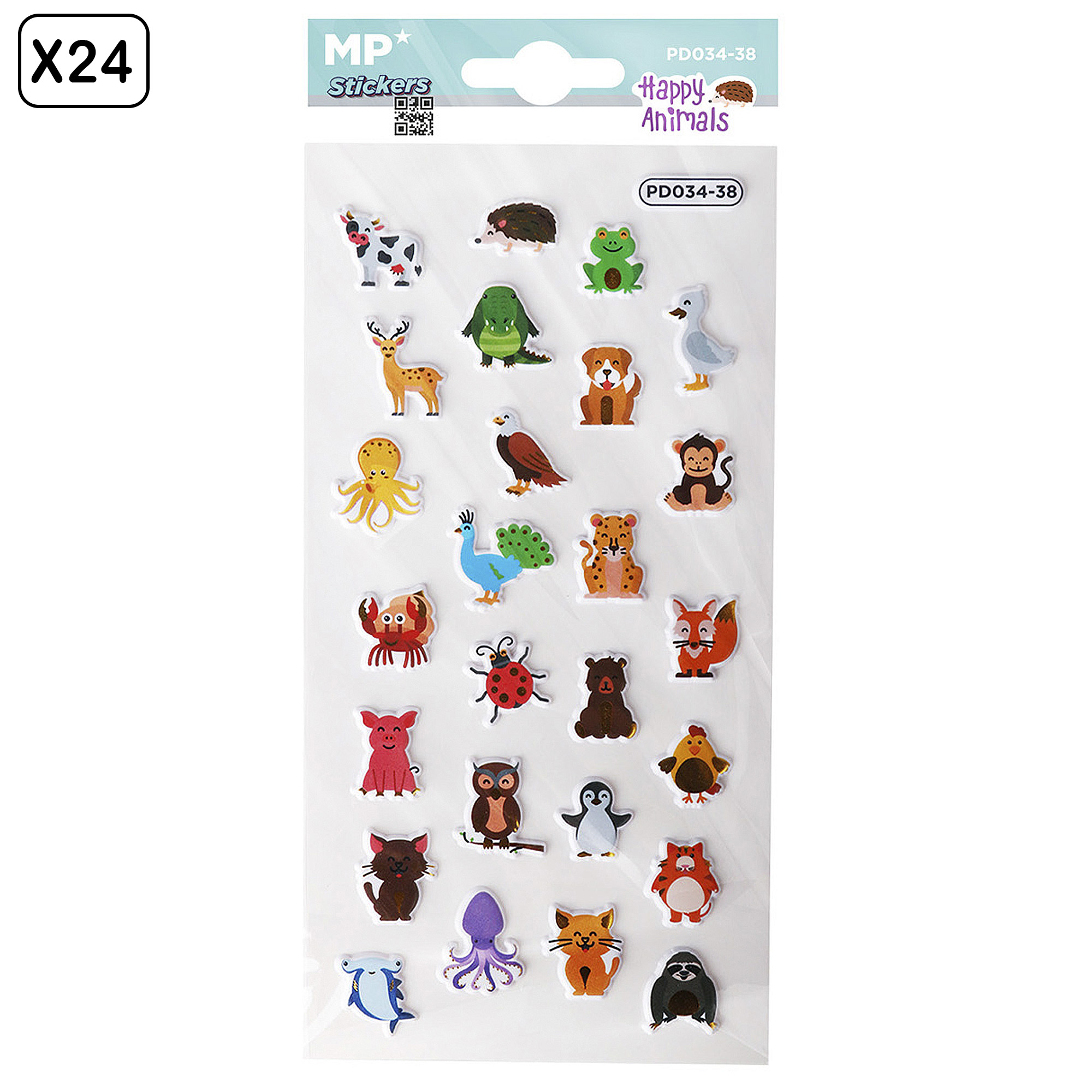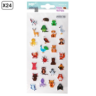 Pack 24 uds. Autocollants stickers relief design animaux heureux