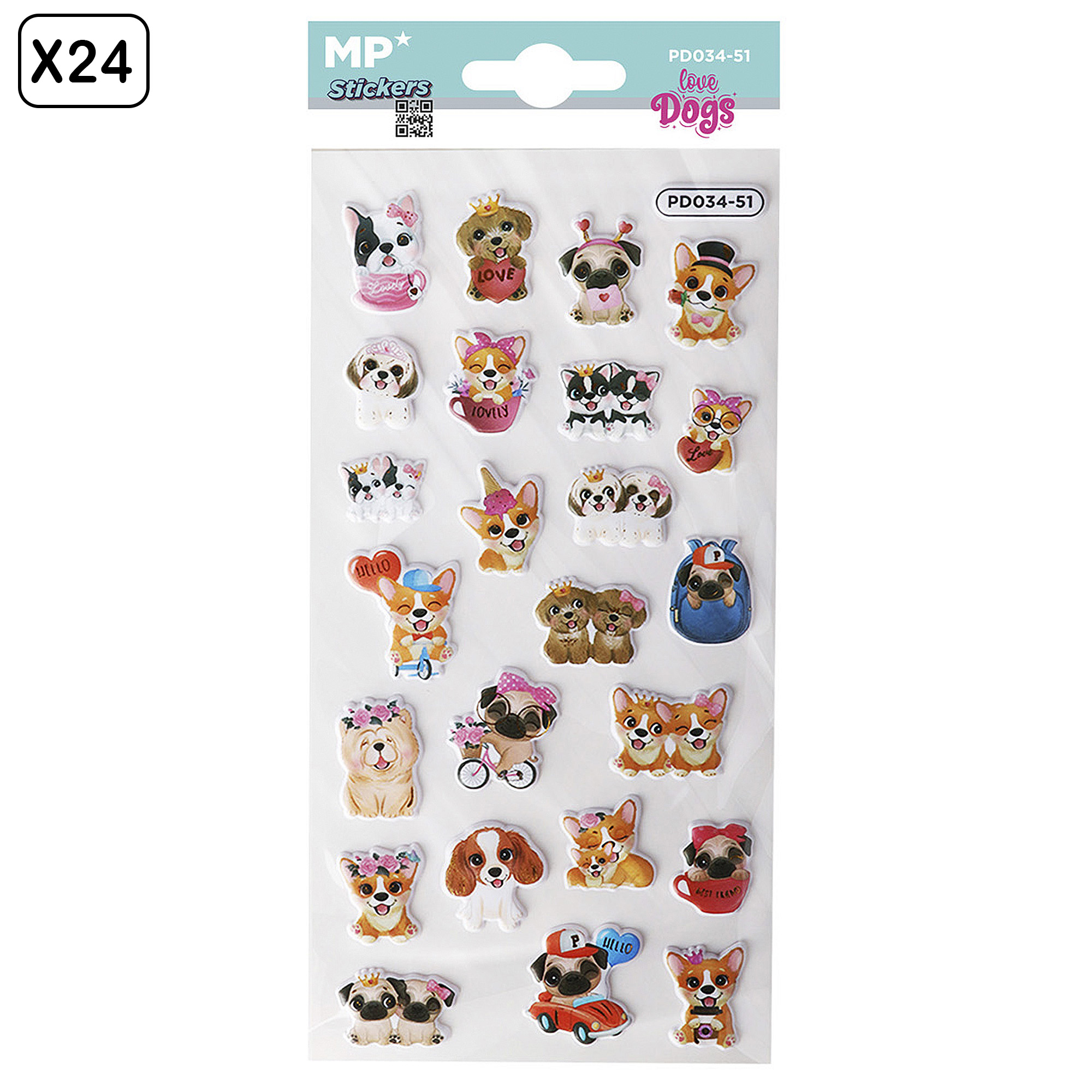 Pack 24 uds. Autocollants stickers relief design chiens