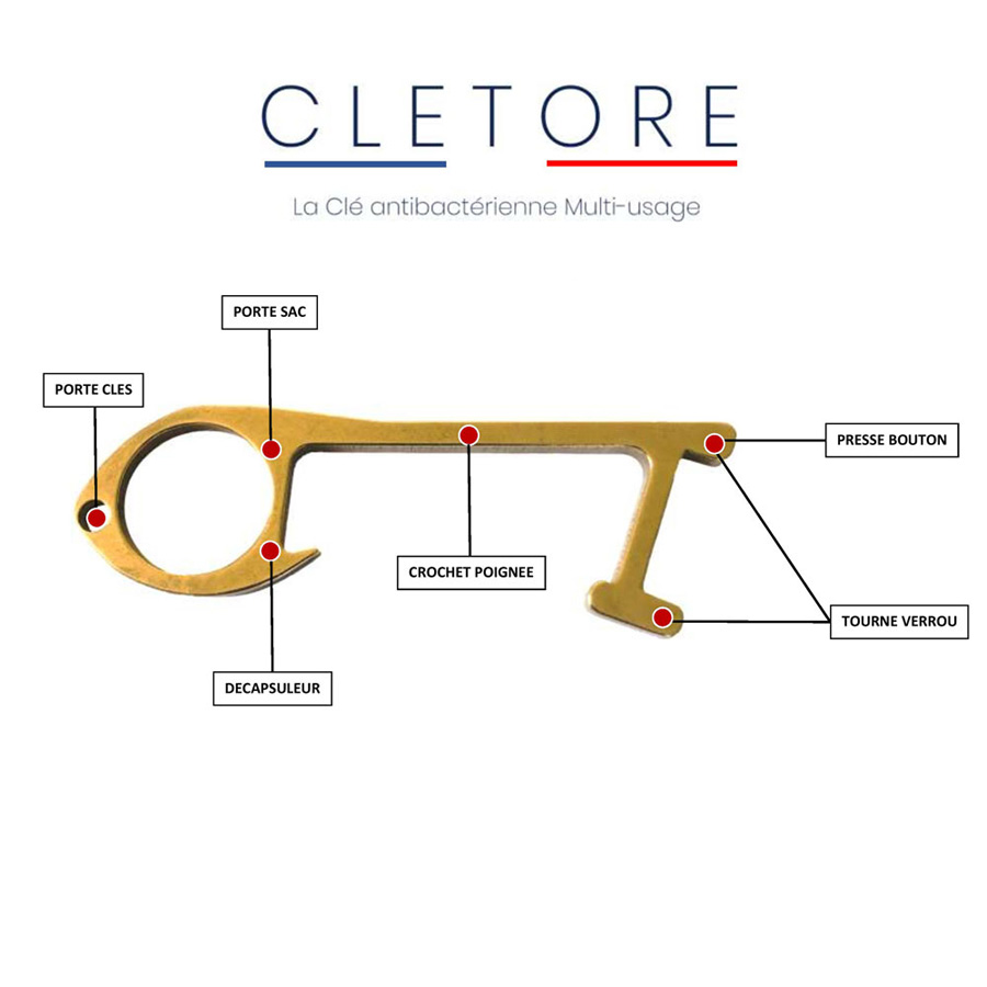 - CLETORE vous permet de garder vos distances avec les objets publics à fort passage tels que les poignées de porte, verrous, digicodes, interrupteurs, écrans tactiles …
