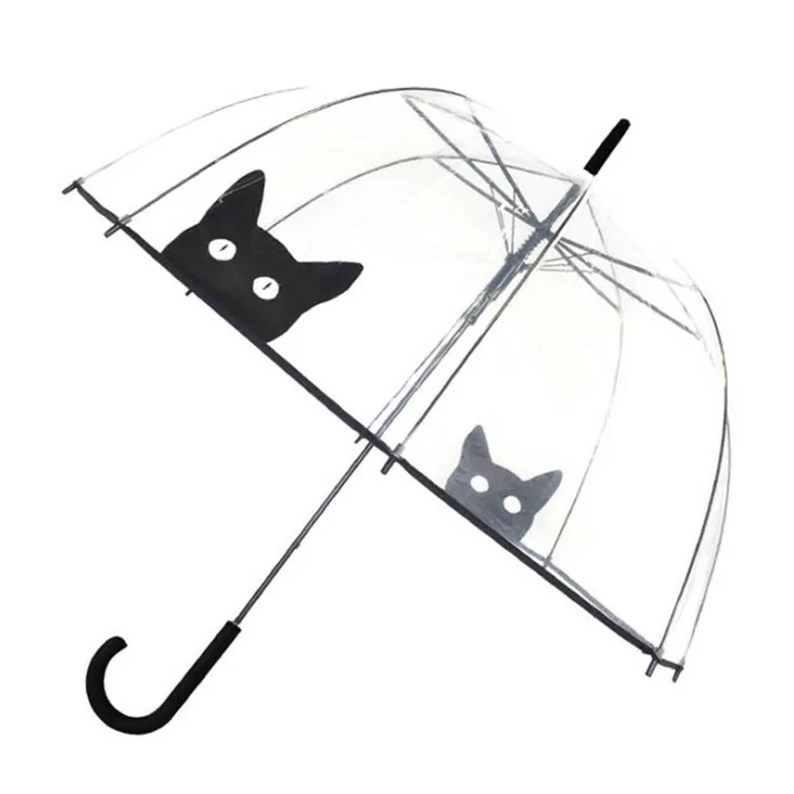 Parapluie Cloche, long et transparent - Élégance et Protection Automatique pour Adultes et Enfants - Chat