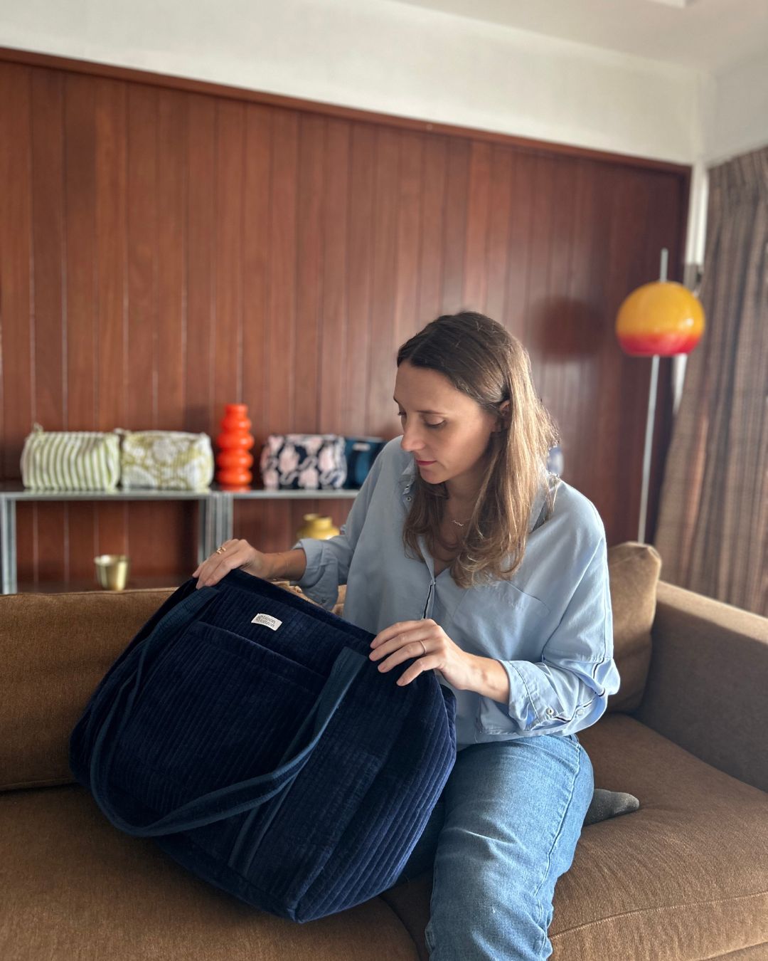 Sac week-end ou à langer lola velours bleu nuit