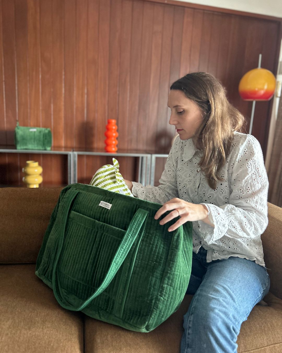 Sac week-end ou à langer lola velours emeraude