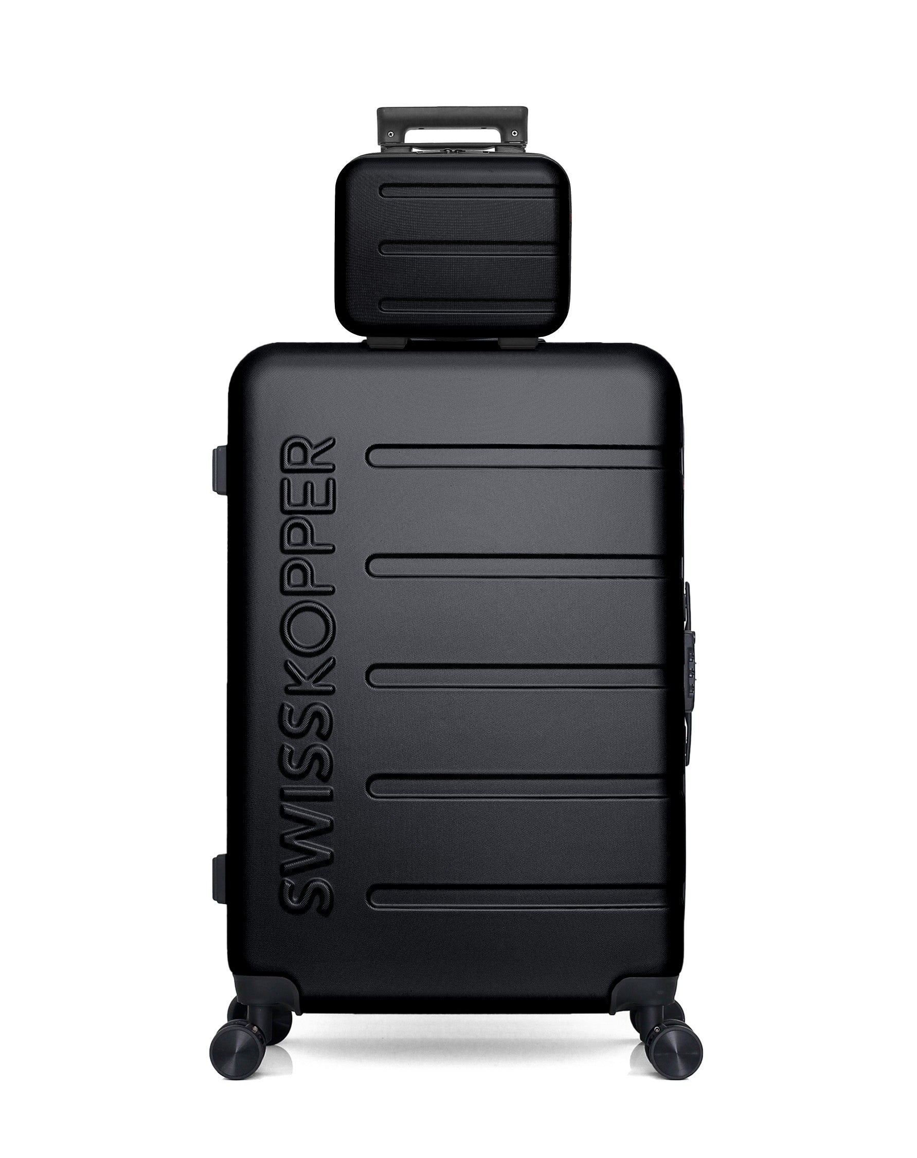 Le lot de 2, composé de la valise grand format et du vanity AIGLE de Swiss Kopper , est idéal pour les longs séjours. Solides et élégants, ces deux articles offrent une grande capacité de rangement tout en protégeant vos effets personnels avec style.