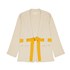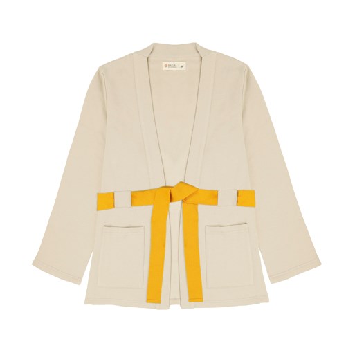 - La forme de cette veste d'intérieur s'inspire des kimonos traditionnels. Grâce à sa coupe ample et sa ceinture jaune à la taille, elle vous offre une parfaite liberté de mouvement.