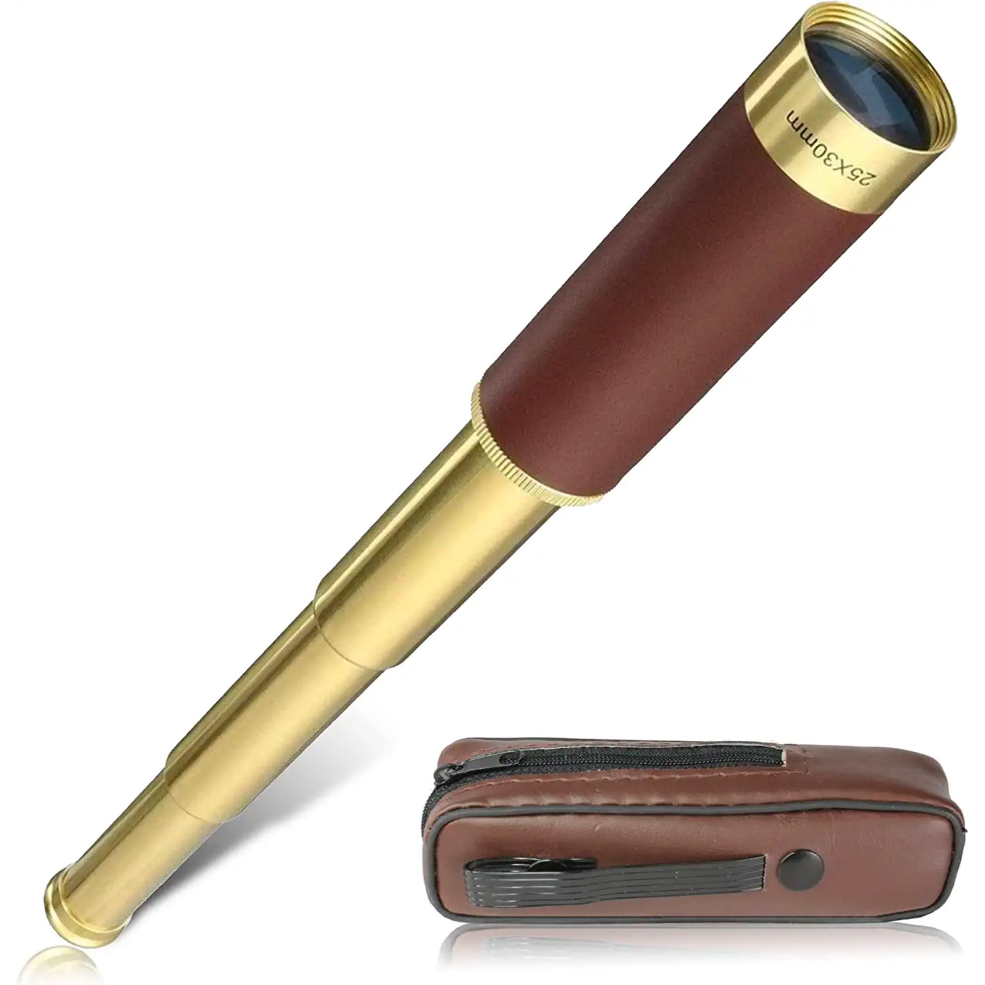 Monoculaire télescopique x25 lentille 30 mm effet cuir nature
