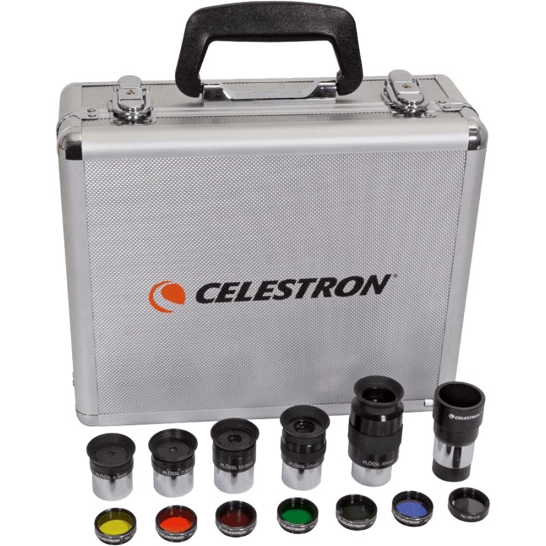 Les oculaires Plössl de haute qualité vous aideront à obtenir un faible ou fort grossissement grâce à ses oculaires allant de 4mm à 32mm. Pour encore plus de puissance, utilisez la lentille Barlow pour doubler le grossissement de vos oculaires, 10 combinaisons différentes possibles. Choisissez le filtre de couleur bleu pour faire ressortir la Grande Tache Rouge de Jupiter, ou utiliser le filtre lunaire pour réduire sa luminosité et ainsi vous pourrez observer les cratères avec un plus grand contraste.