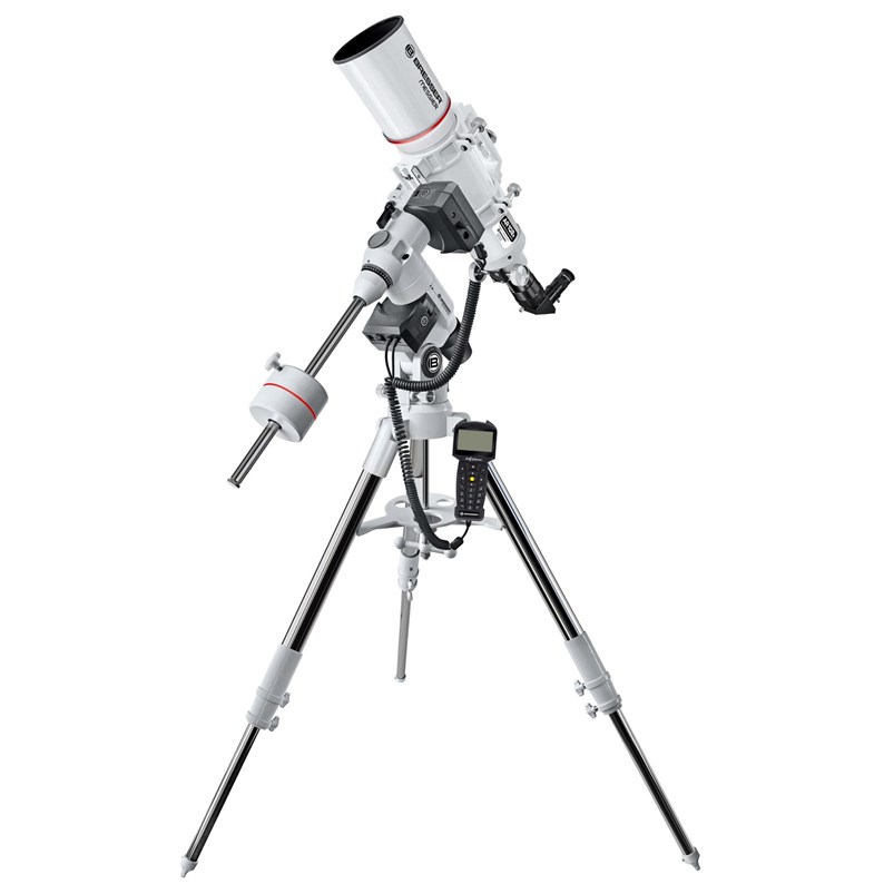 Le système BRESSER GoTo permet aux débutants de commencer les observations astronomiques en quelques minutes sans avoir à effectuer de recherches fastidieuses, et vous guide vers des objets qui sont difficiles à localiser à travers un champ de viseur standard. Il suffit d’appuyer sur un bouton et le système GoTo permettra à votre lunette de se positionner automatiquement avec précision pour découvrir des planètes, des nébuleuses, des galaxies, ou encore de localiser des objets ténus qui sont difficiles à trouver. Sa base de données comprend plus de 100 000 objets astronomiques, que vous pourrez encore compléter avec vos données personnelles.Caractéristiques:Monture équatoriale GoTo avec un moteur de suivi sur les deux axes et une télécommande de contrôle permettant de trouver et suivre facilement la lune, planètes, étoiles et autres.Niveau à bulle intégré pour une mise en place facile du trépiedChercheur optique 6x30 avec réticule: chercheur optimisé pour une utilisation confortableRenvoi d´angle 31.7mm Collier de fixation pour support parallèle intégré avec poignée et adaptateur photo pour suivi (filetage 1/4”)Plateau d´adaptation queue d´aronde avec rail de protection en acier inoxydableAdaptateur pour 50,8mm (2“) vers 31,7mm avec adaptateur T2 31,7mm intégré (une bague adaptatrice T2 pour votre appareil photo est cependant requise)Compris dans la livraison:Télescope avec sa monture équatoriale et son trépied,Oculaire 26mm Super Plössl 31,7mm , Renvoi d´angle 31,7mm ,Adaptateur 31,7mm et T2, Tube clamps with dovetail rail for GP-Level, queue d´aronde pour niveau GPPoignée et support appareil photo, chercheur 6x30, Logiciel Astro Stellarium,carte des étoiles orientable
