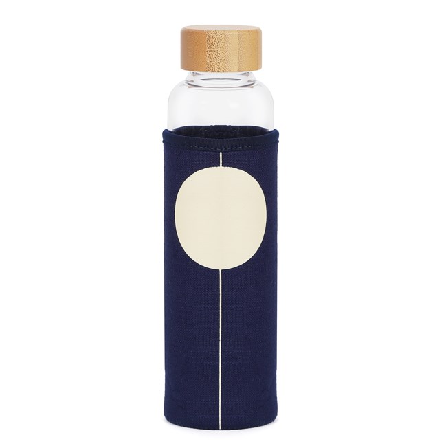 Bouteille en verre borosilicate. Filtre en acier inoxydable. Housse en tissu. Bouchon en bambou.