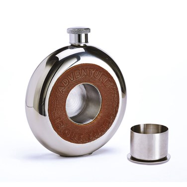Gainée de cuir de vache, cette flasque en acier inoxydable est de tous les voyages. Discrète et légère, elle intègre un gobelet en son centre, pour une pause gourmande en balade !