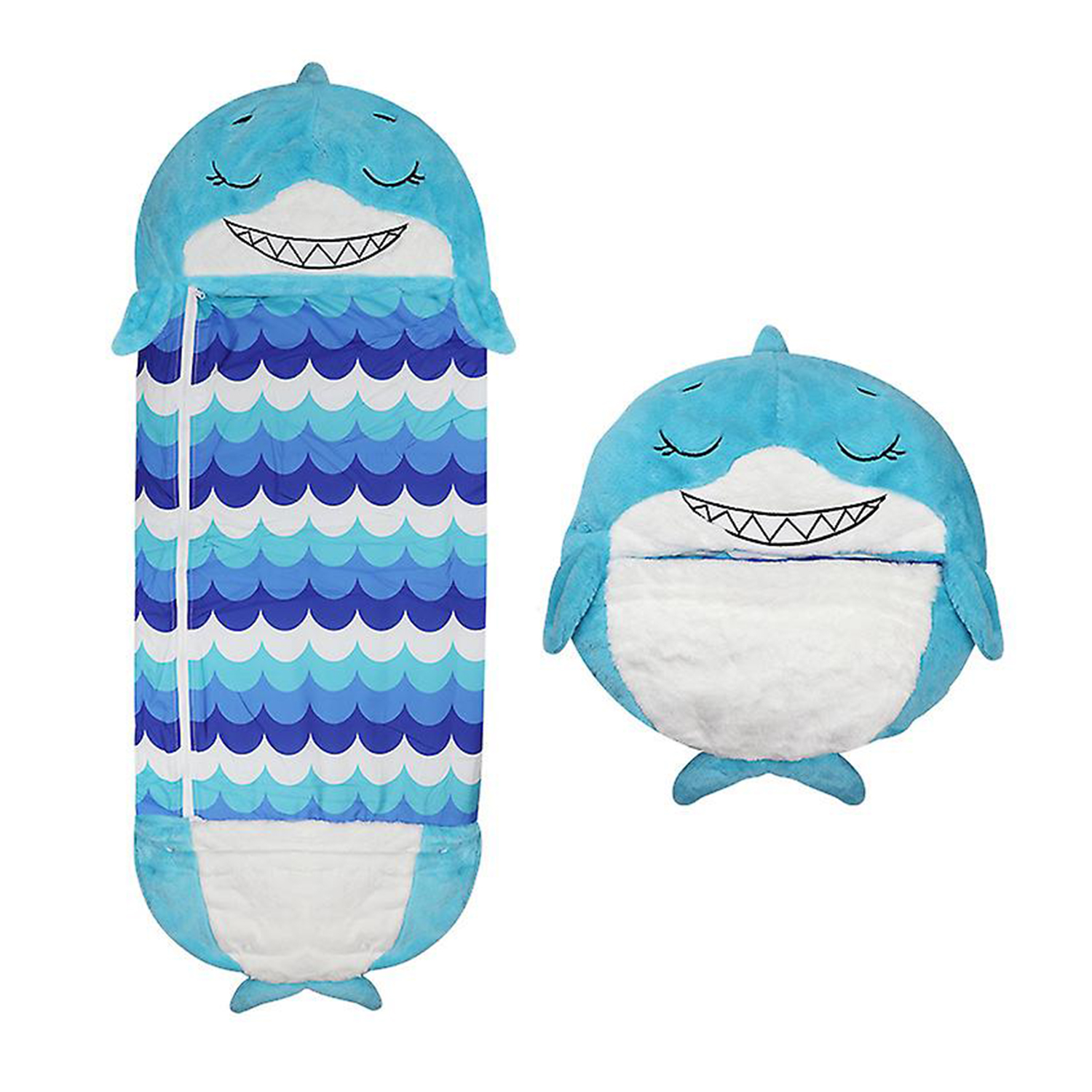 Sac de couchage convertible en coussin, pour enfants, baleine bleue.