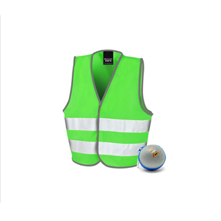 Le METEOR + Gilet vert enfant est une solution pratique et ludique pour améliorer la visibilité des enfants lors de leurs déplacements. Présenté dans une petite boule réfléchissante, ce kit se fixe facilement sur un sac ou à la ceinture.