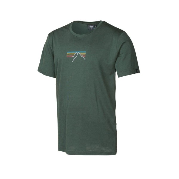 Le Ivanhoe UW Sunset Ceasar pour homme - 100% laine mérinos extra fine - Vert est un t-shirt à la coupe classique et à la tenue imbattable. Sur le devant, le t-shirt présente un imprimé multicolore dans une belle palette de couleurs. La laine est d'une qualité très douce, ce qui signifie que la plupart des gens la porteront directement sur la peau sans aucun problème. Sur la manche gauche, le t-shirt comporte un autre logo.
