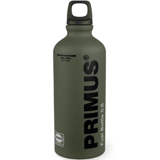 Description de la bouteille à fuel Primus 0,6L GreenLa bouteille à fuel Primus de 0,6 litre, allie fiabilité, légèreté, compacité et solidité. Fabriquée en aluminium pur, cette gourde à fuel représente un réservoir polyvalent idéal pour stocker, transporter et utiliser du combustible liquide de type Fuel pour le camping, le bivouac et la grande randonnée de type trek. Polyvalentes, les bouteilles à Fuel Primus s'avèrent compatibles avec la plupart des réchauds utilisant du combustible Fuel, y compris ceux des marques Optimus, MSR, ou Primus. Pour une identification facile et une sécurité accrue, la marque Primus a clairement inscrit le terme ""FUEL"" en grand sur la bouteille, éliminant ainsi toute confusion possible avec une gourde classique pour stocker de l'eau. Des consignes et des symboles de sécurité, notamment des symboles internationaux de contenu toxique et inflammable, sont également présents sur les gourdes à Fuel Primus pour renforcer la sécurité. Ses dimensions, bouchon inclus, sont de 21 cm de hauteur sur 7 cm de diamètre, avec un poids à vide de 144 grammes.La bouteille à fuel 0,6L Green Primus en détail :La gourde à fuel 0,6 litre de Primus affiche une capacité théorique de 600 ml. Par mesure de sécurité, il est crucial de ne jamais remplir cette bouteille à fuel complètement. Ainsi, la bouteille à fuel Primus 0,6L présente un niveau à ne pas dépasser, clairement indiqué sur sa paroi : 530 ml de carburant au maximum. Son système de fermeture par bouchon à vis avec joint étanche assure une étanchéité parfaite. De plus, le bouchon est doté d'une petite anse facilitant l'attache d'un mousqueton ou d'un système porte-clés, ce qui la rend pratique à transporter, y compris accrochée sur un sac de trekking par exemple. En optant pour une bouteille à fuel Primus, vous choisissez un réservoir performant, pratique et sécurisé, idéal en complément de votre réchaud utilisant du carburant liquide de type fuel.Garantie PrimusLes bouteilles à fuel Primus de 0,6 litre sont assorties d'une garantie de 2 ans, couvrant tout défaut de fabrication ou de matière