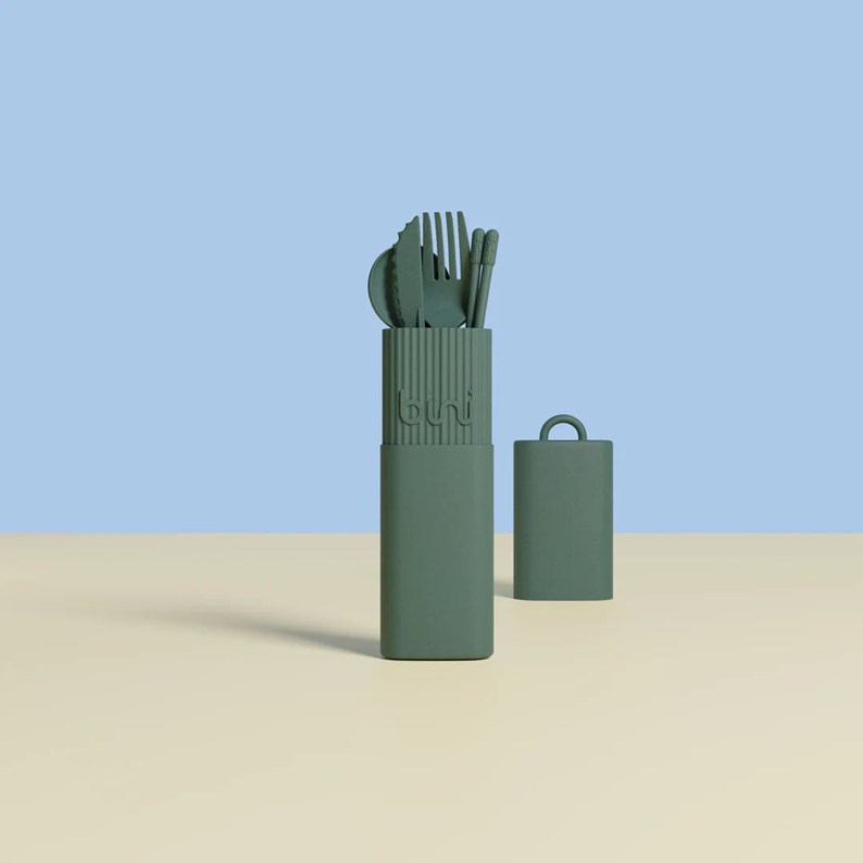 Dans le kit de couverts réutilisables Bini, il y a une fourchette qui pique vraiment, un couteau qui coupe parfaitement, des baguettes qui saisissent bien, une cuillère creuse pour de belles cuillerées, dans un petit étui léger, nomade et ingénieux. Le tout fabriqué en France à partir de matières bio sourcées