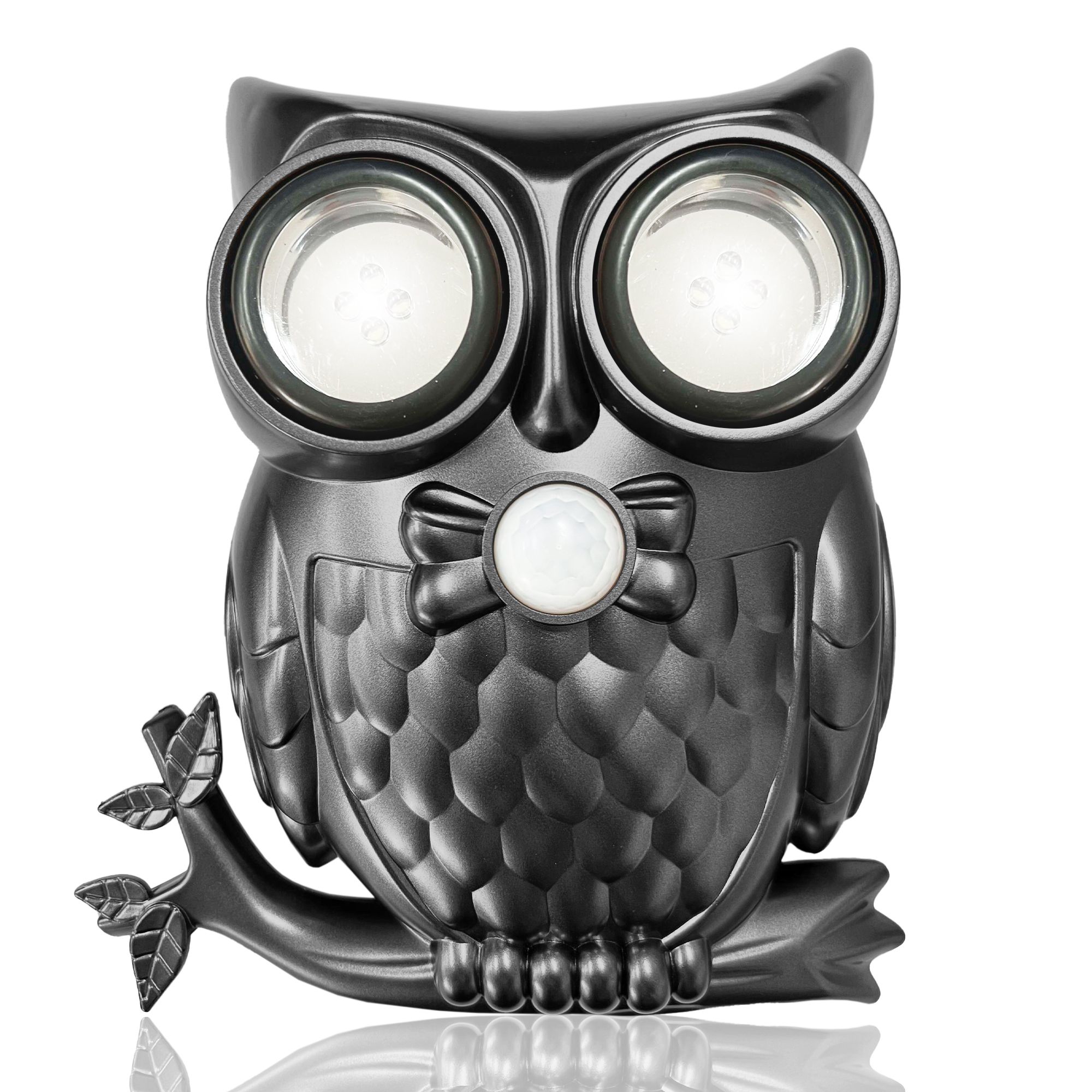 - SONORE - Lorsqu'un mouvement est détecté, les deux yeux s'éclairent et le hibou hulule. Le son peut être désactivé si vous ne souhaitez pas être gratifié d'un hululement à chaque passage !