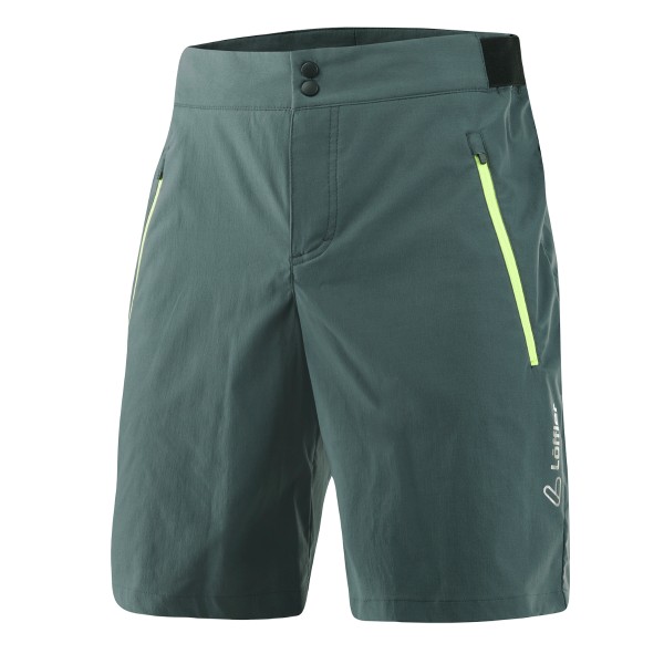 Les Lœffler cuissard cycliste Kort m bike Shorts Comfort-E CSL night Green pour homme sont des cuissards cyclistes que vous pouvez bien porter aussi bien en VTT qu'en vélo électrique. Le cuissard est léger, élastique et doté d'un pantalon intérieur amovible.
