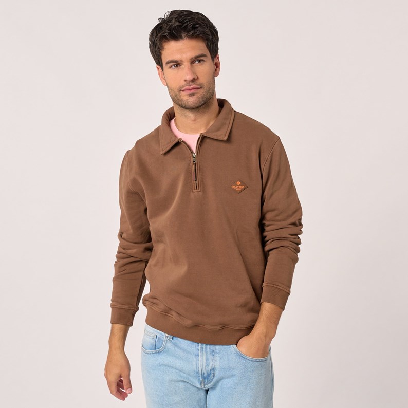 Sweat à col zippé marron XXL