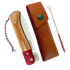 L’étui en cuir véritable est confectionné artisanalement dans le Pays basque. Tanné végétal, coloré à la châtaigne, il se porte à la ceinture pour garder le couteau toujours à portée de main. Élégant, confortable et durable, il complète parfaitement le couteau pour un usage en toute liberté, sans rien sacrifier au style.