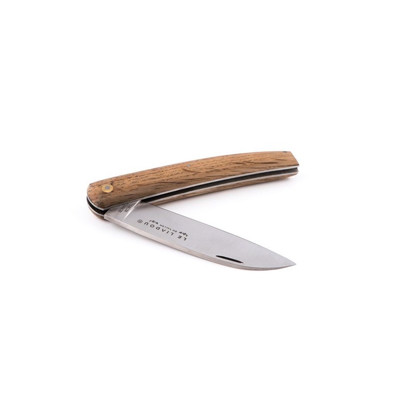Comme son cousin le Laguiole, Le Liadou du Vallon est un authentique couteau aveyronnais aux origines paysannes. Si le Laguiole est le couteau des bergers de l’Aubrac, le Liadou du Vallon est l’emblématique outil des vignerons du Vallon de Marcillac. Ce modèle est équipé d'un manche en chêne de foudre de 12 cm entièrement façonné à la main. Sa lame acier inoxydable Sandvik 14C28 combine d'excellentes performances de coupe, une dureté élevée et une très bonne résistance à la corrosion. Longueur du couteau : 21,5 cm ouvert et 12 cm fermé Poids du couteau : 90 g environ Livré dans son coffret avec certificat d'origine et Garanti à vie.