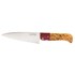 Matériaux : Lame en acier inoxydable 14C28N, manche en bois de bouleau stabilisé, résine alimentaire et toile de jute pour les mitres.