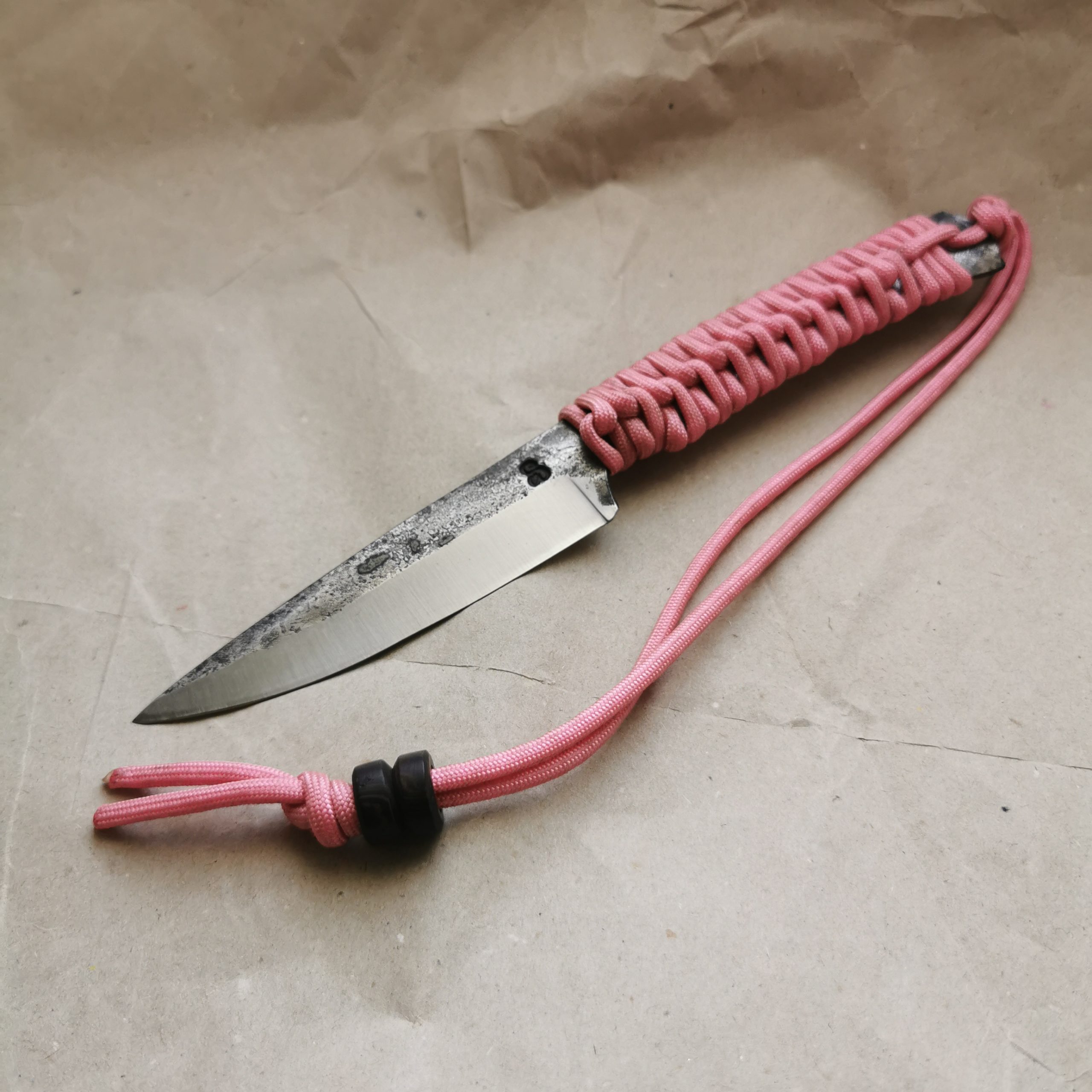 Côté manche, nous avons opté pour cette paracorde rose clair. Comptez sur un peu plus de 2 mètres, une fois défaite.