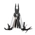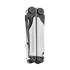 Fonctions : Pinces à bec effilé, pinces régulières, cisailles/coupe fils, couteau, couteau cranté, scie, lime diamantée, lime à bois/métal, ciseaux, adaptateur pour grand embout, adaptateur pour petit embout, tournevis grand, pinces coupe fils, ouvre-boîtes/ouvre-bouteilles, règle, anneau porte-dragonne.