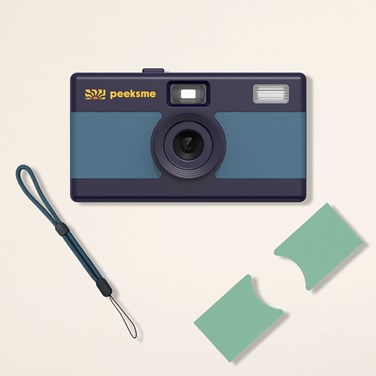 Appareil photo peeksme bleu + 1 paire de clips vert + 1 lanière bleue