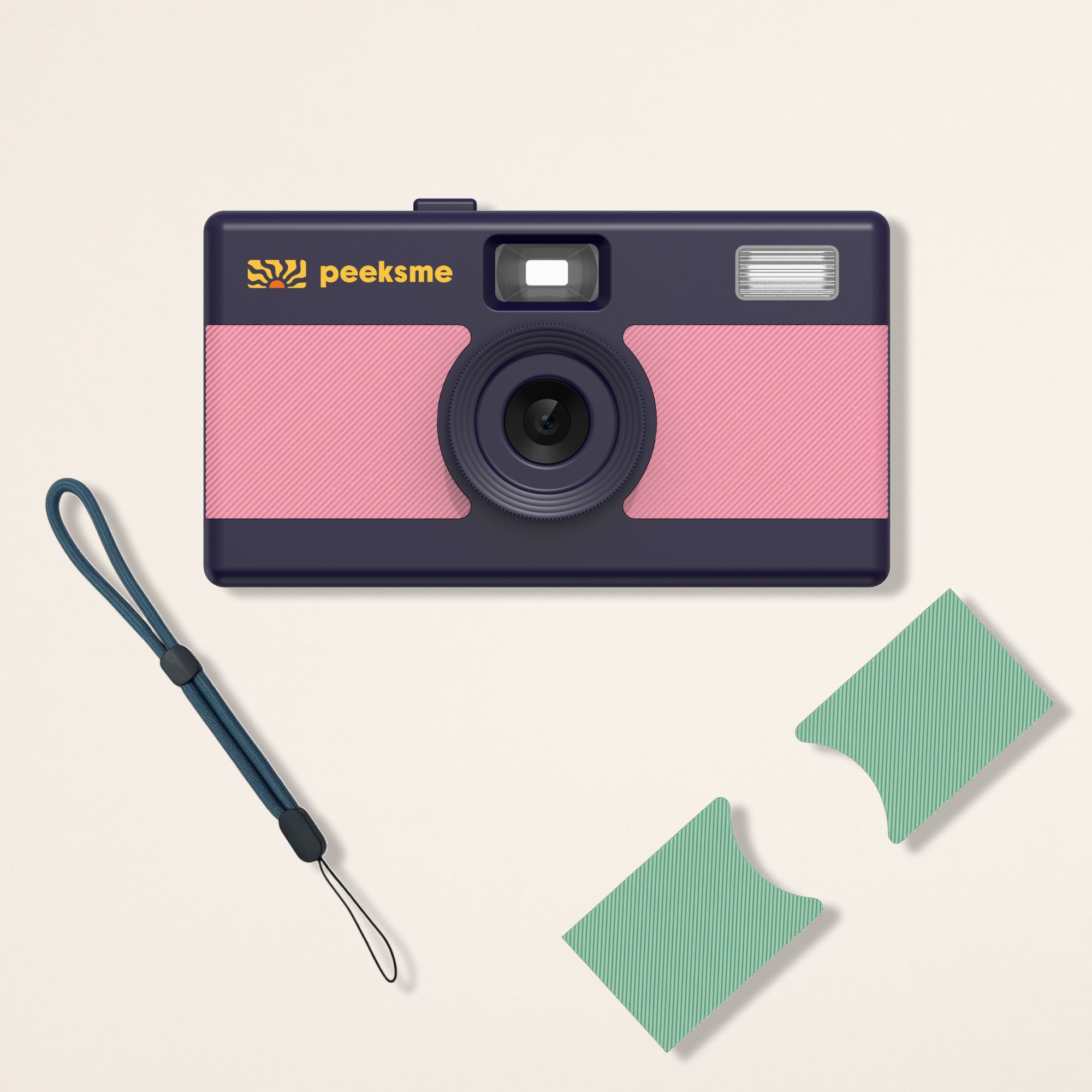 Appareil photo peeksme rose + 1 paire de clips vert + 1 lanière bleue