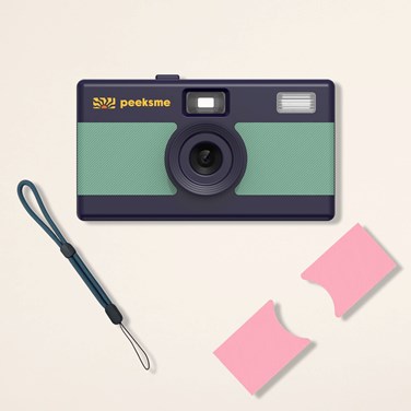 Appareil photo peeksme vert + 1 paire de clips rose + 1 lanière bleue